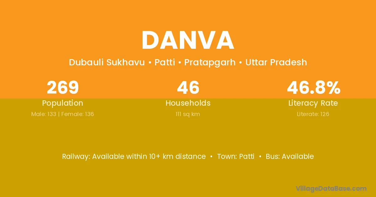 Danva village has a total population of 269 people, of which 133 are males and 136 are females.