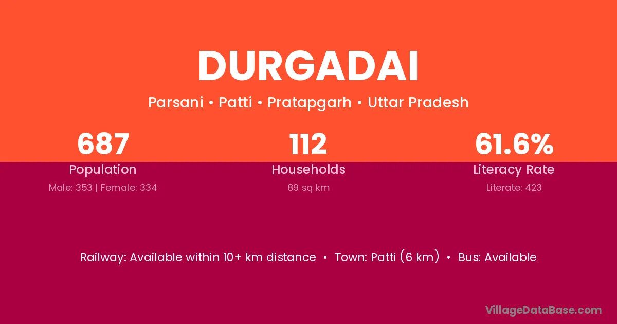 Patti (6 km) is the nearest town to Durgadai village for major economic activities and is located approximately 6 km away.