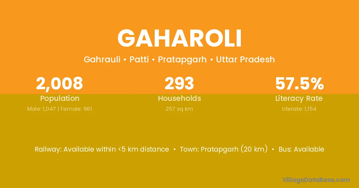 Gaharoli village has a total population of 2,008 people, of which 1,047 are males and 961 are females.