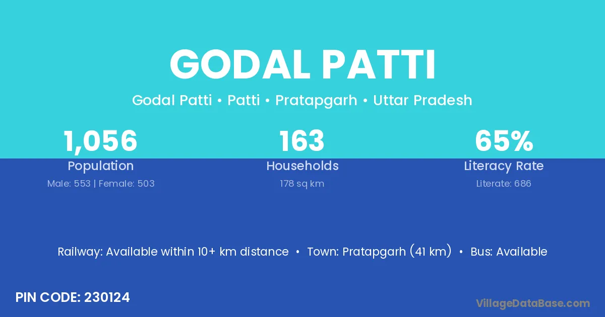 Pratapgarh (41 km) is the nearest town to Godal Patti village for major economic activities and is located approximately 41 km away.