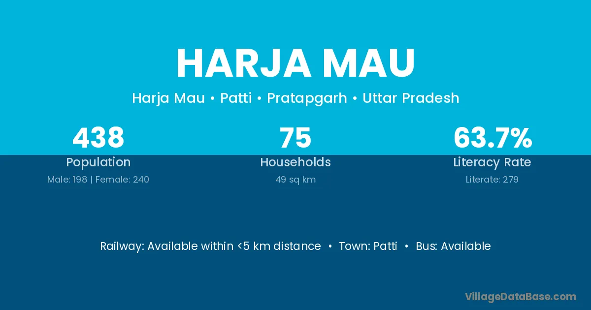 Harja Mau village has a total population of 438 people, of which 198 are males and 240 are females.