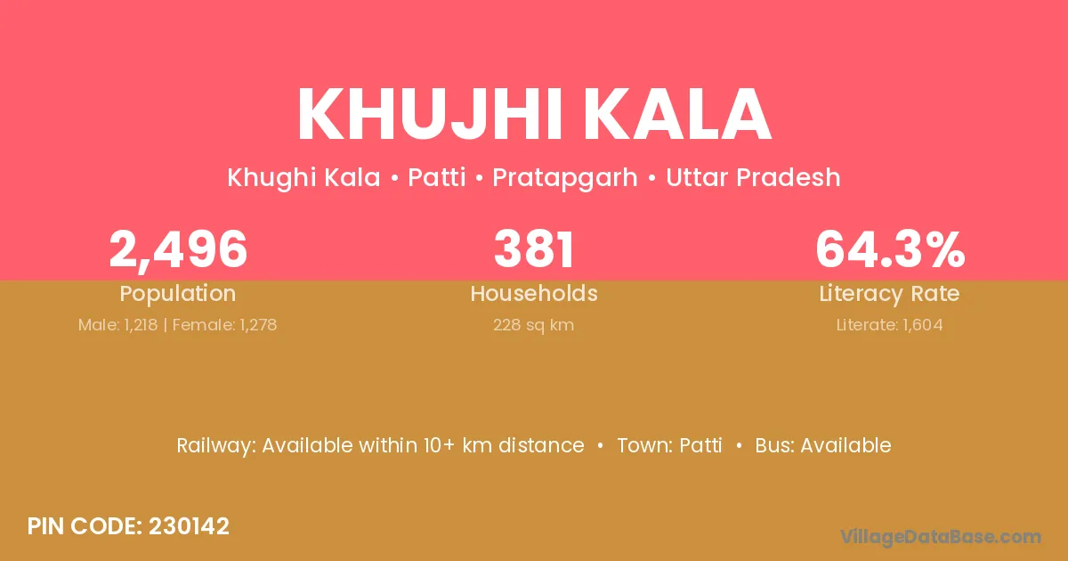 Khujhi Kala village has a total population of 2,496 people, of which 1,218 are males and 1,278 are females.
