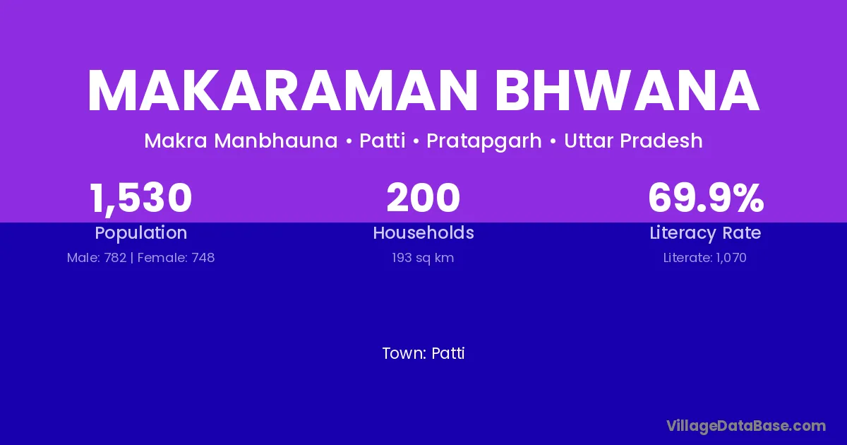 Makaraman Bhwana village has a total population of 1,530 people, of which 782 are males and 748 are females.