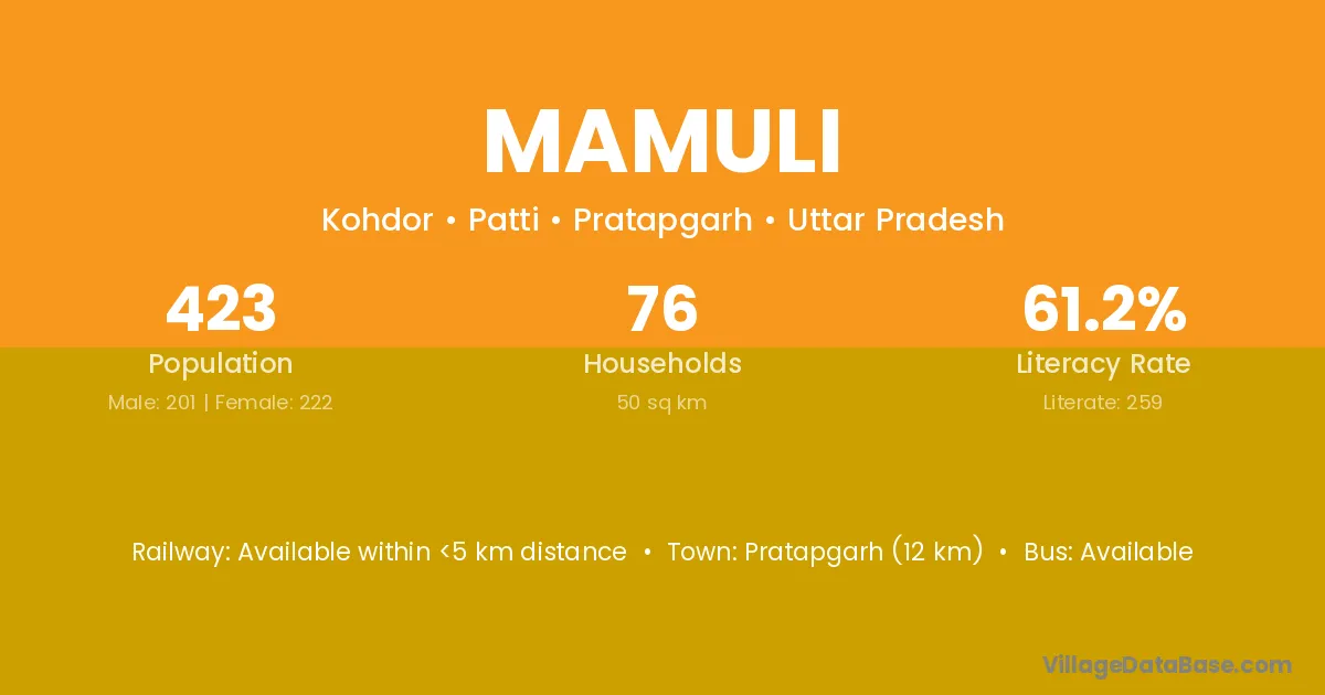Mamuli village is located in the Patti Tehsil of the Pratapgarh district in Uttar Pradesh .