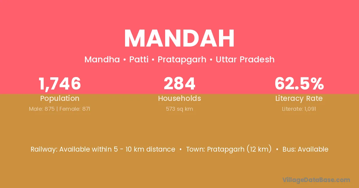 Pratapgarh (12 km) is the nearest town to Mandah village for major economic activities and is located approximately 12 km away.