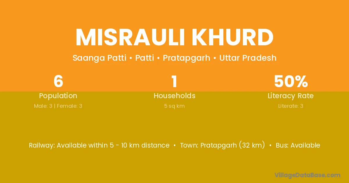Misrauli Khurd village has a total population of 6 people, of which 3 are males and 3 are females.