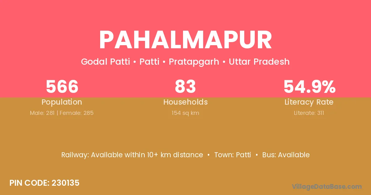 Pahalmapur village has a total population of 566 people, of which 281 are males and 285 are females.