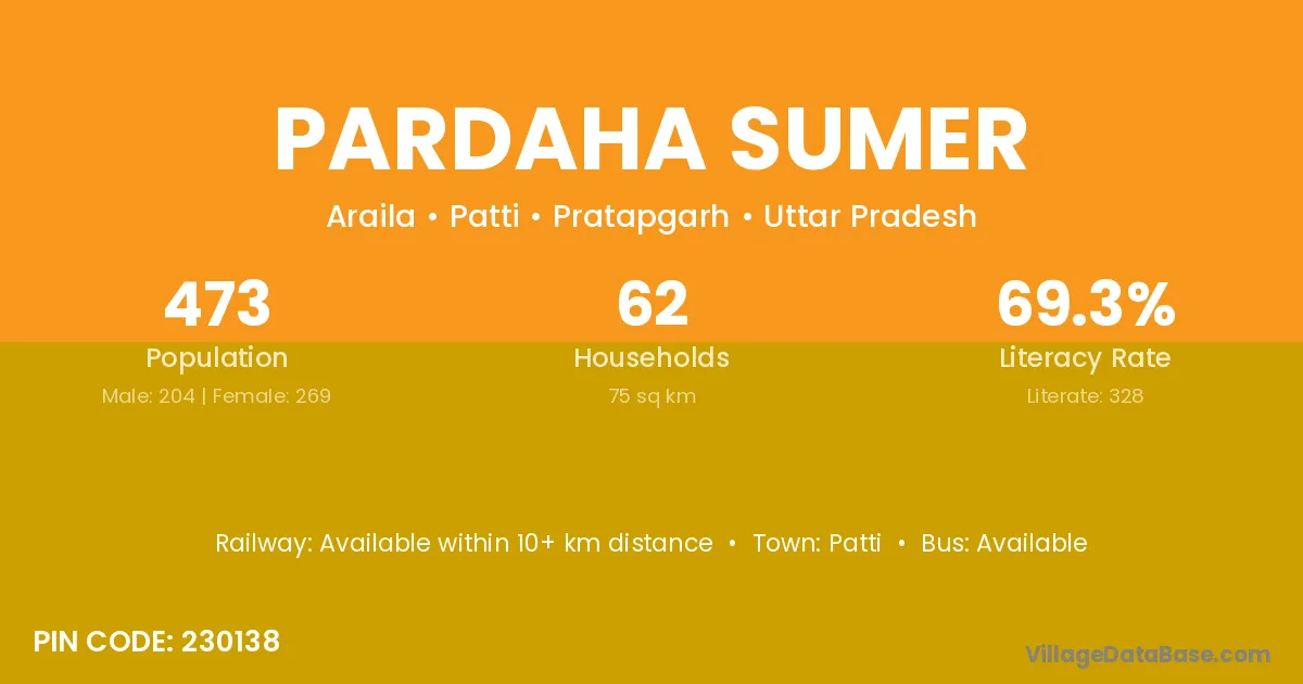 Pardaha Sumer village has a total population of 473 people, of which 204 are males and 269 are females.