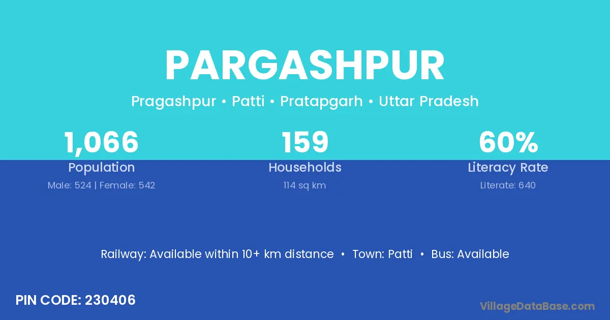 Pargashpur village has a total population of 1,066 people, of which 524 are males and 542 are females.