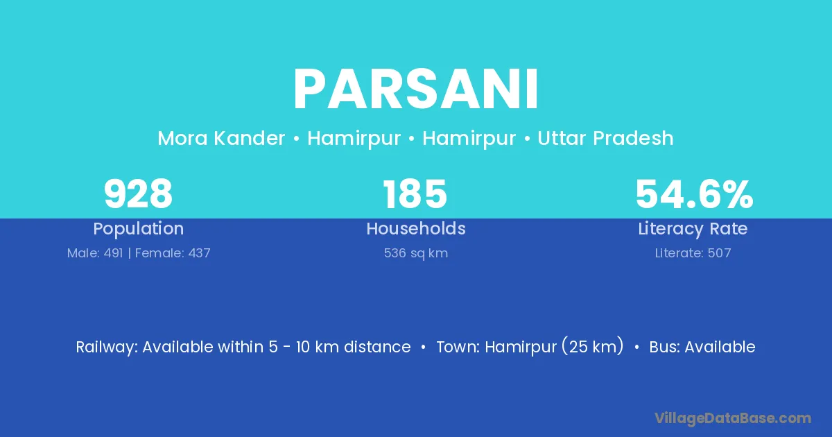 Parsani village has a total population of 1,020 people, of which 456 are males and 564 are females.