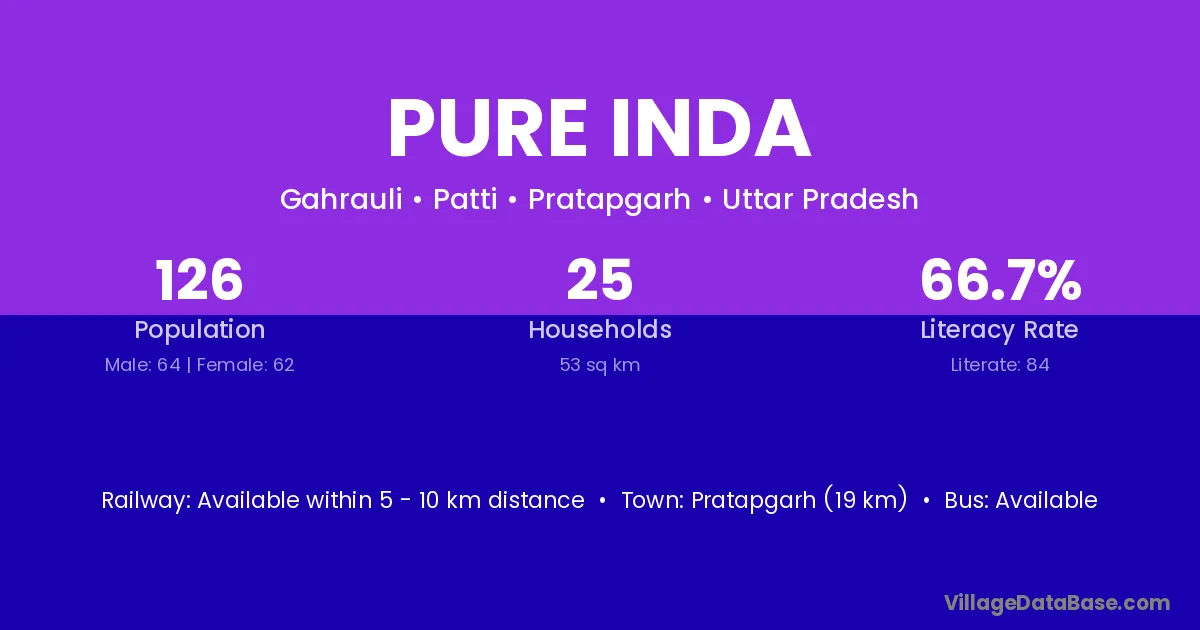 Pratapgarh (19 km) is the nearest town to Pure Inda village for major economic activities and is located approximately 19 km away.