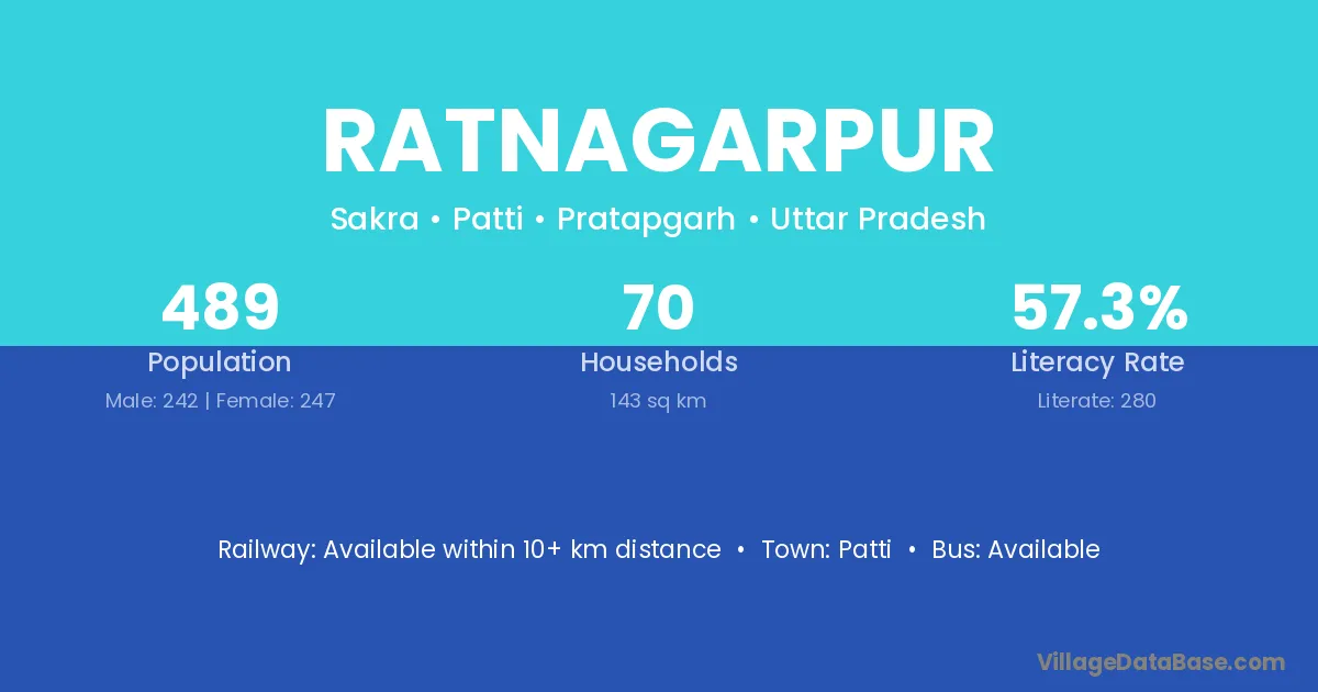 Ratnagarpur village has a total population of 489 people, of which 242 are males and 247 are females.