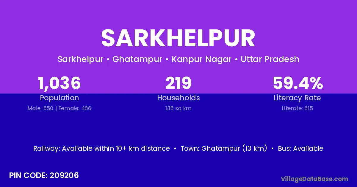 There are approximately 497 households in Sarkhelpur village.