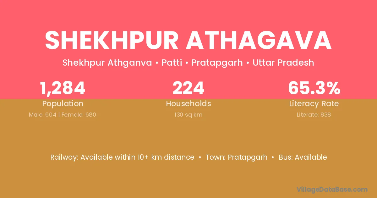 Shekhpur Athagava village has a total population of 1,284 people, of which 604 are males and 680 are females.