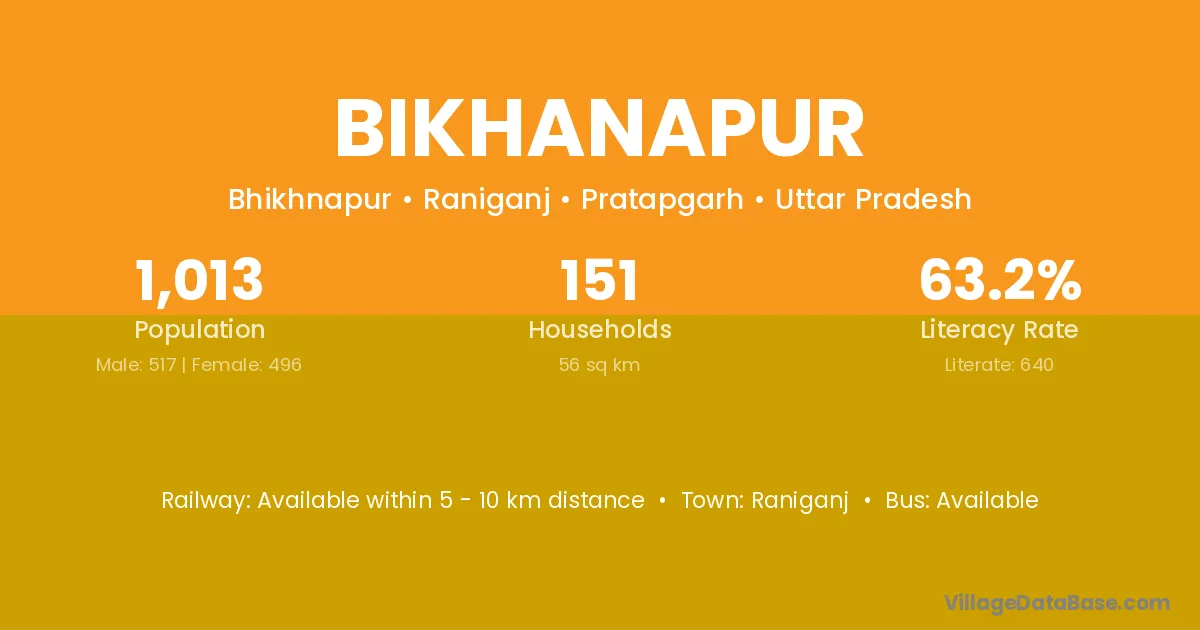 Bikhanapur village has a total population of 1,013 people, of which 517 are males and 496 are females.