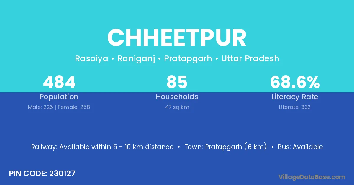 Pratapgarh (6 km) is the nearest town to Chheetpur village for major economic activities and is located approximately 6 km away.
