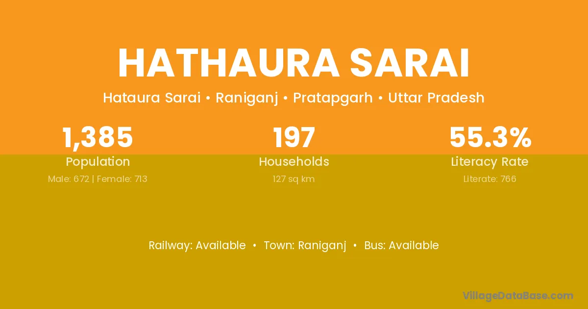 Hathaura Sarai village has a total population of 1,385 people, of which 672 are males and 713 are females.