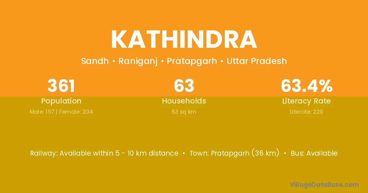 Pratapgarh (36 km) is the nearest town to Kathindra village for major economic activities and is located approximately 36 km away.