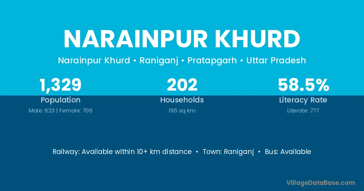 Narainpur Khurd village has a total population of 1,329 people, of which 623 are males and 706 are females.