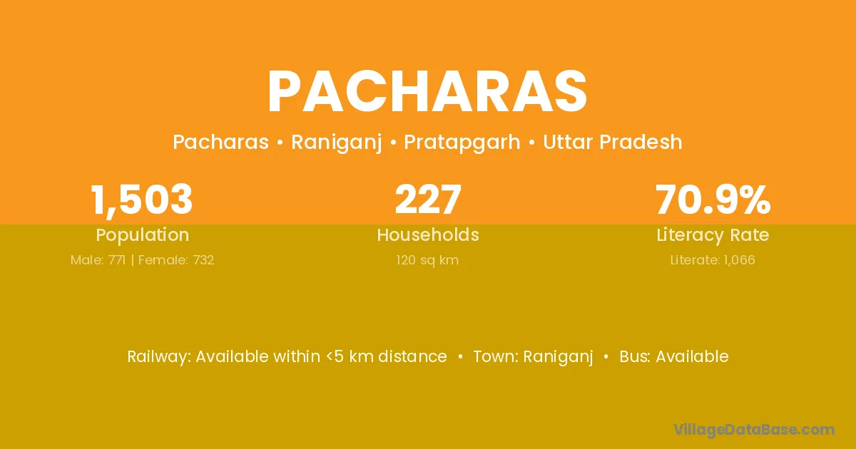 Pacharas village has a total population of 1,503 people, of which 771 are males and 732 are females.