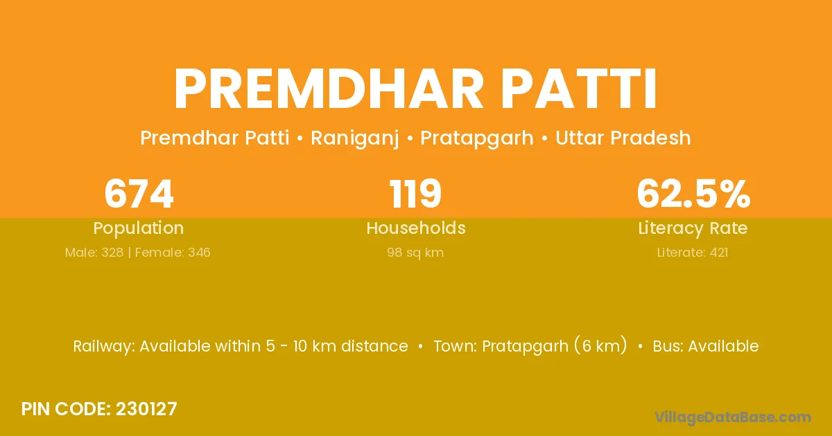 Pratapgarh (6 km) is the nearest town to Premdhar Patti village for major economic activities and is located approximately 6 km away.
