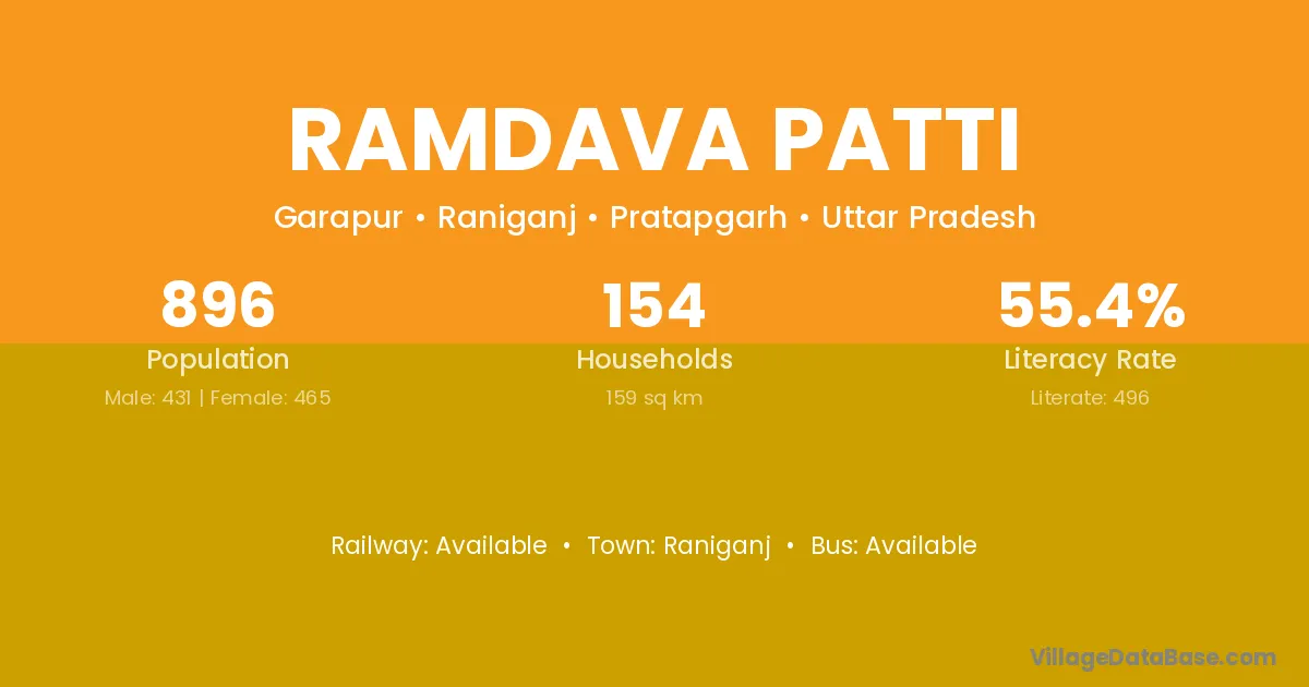 Ramdava Patti village has a total population of 896 people, of which 431 are males and 465 are females.