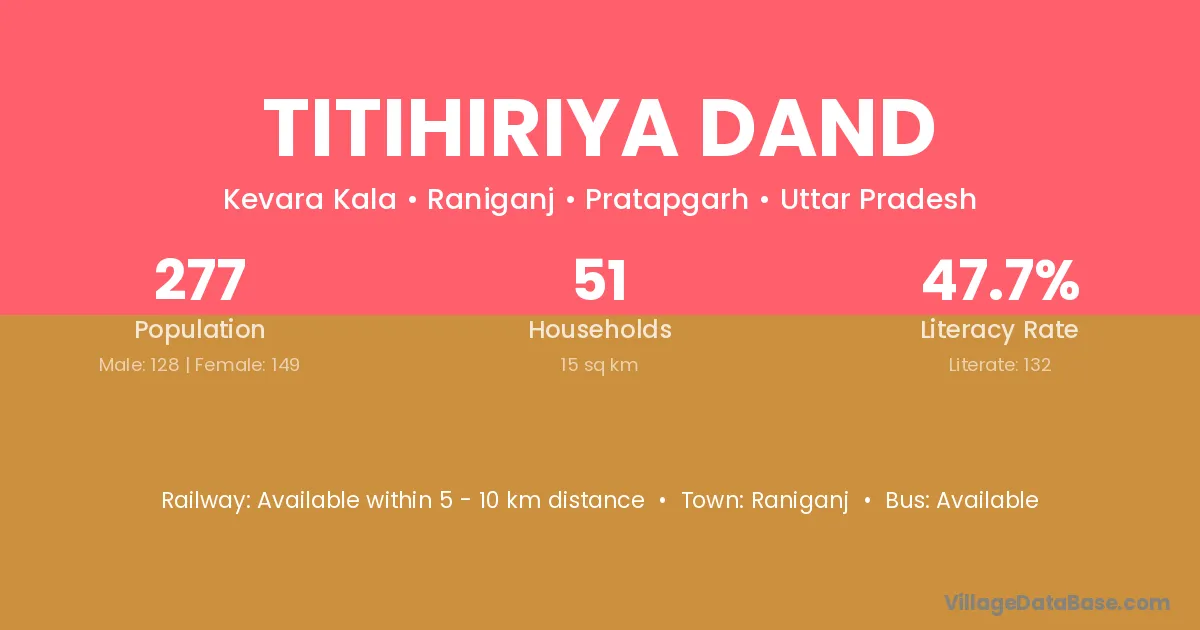 Titihiriya Dand village has a total population of 277 people, of which 128 are males and 149 are females.
