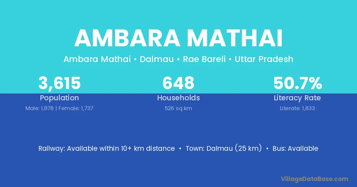 Dalmau (25 km) is the nearest town to Ambara Mathai village for major economic activities and is located approximately 25 km away.