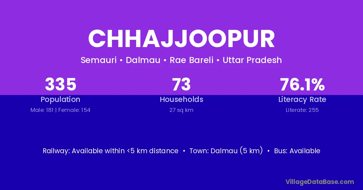 Dalmau (5 km) is the nearest town to Chhajjoopur village for major economic activities and is located approximately 5 km away.