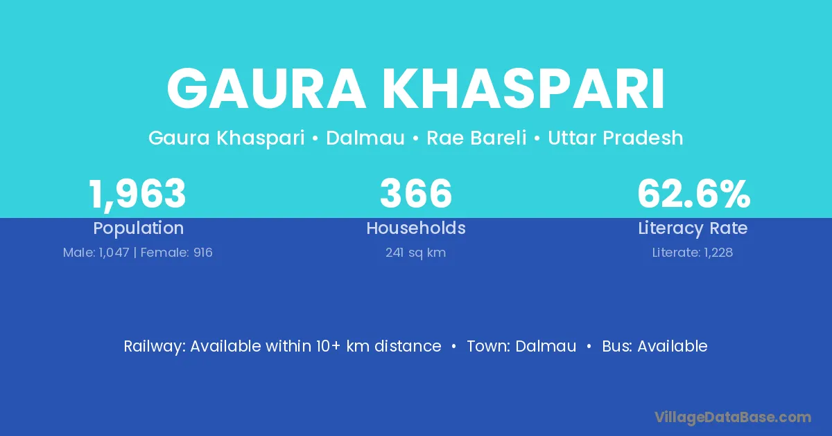 Gaura Khaspari village has a total population of 1,963 people, of which 1,047 are males and 916 are females.