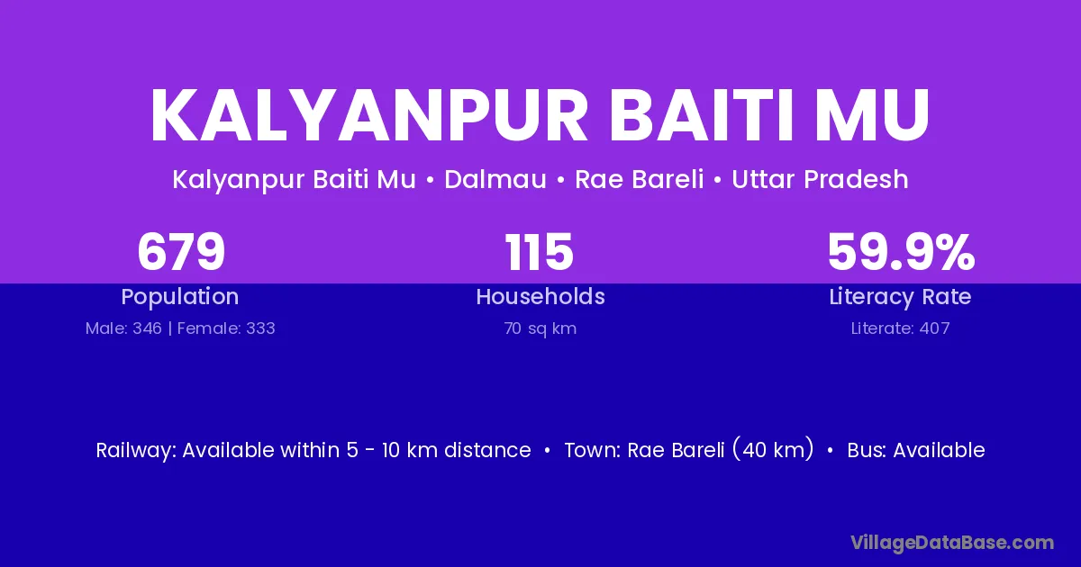 Rae Bareli (40 km) is the nearest town to Kalyanpur Baiti Mu village for major economic activities and is located approximately 40 km away.