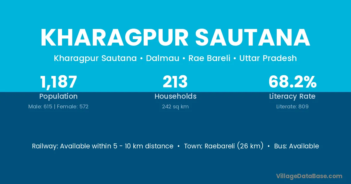 Raebareli (26 km) is the nearest town to Kharagpur Sautana village for major economic activities and is located approximately 26 km away.