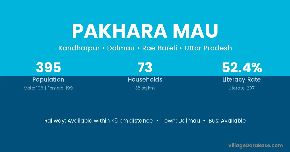 Pakhara Mau village has a total population of 395 people, of which 196 are males and 199 are females.