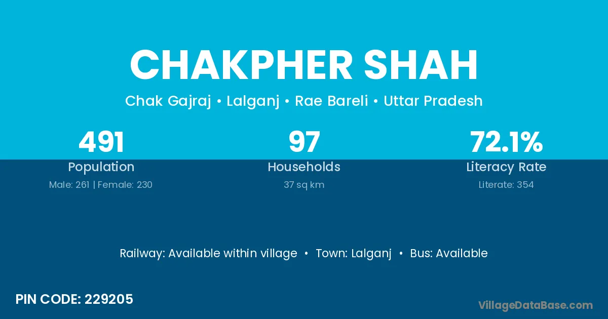 Chakpher Shah village has a total population of 491 people, of which 261 are males and 230 are females.