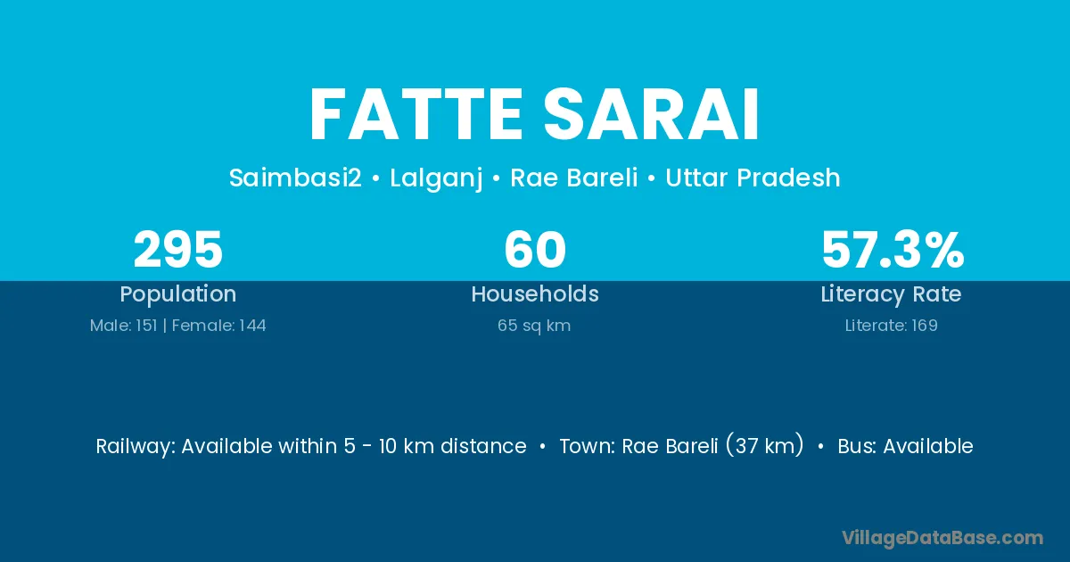 Rae Bareli (37 km) is the nearest town to Fatte Sarai village for major economic activities and is located approximately 37 km away.