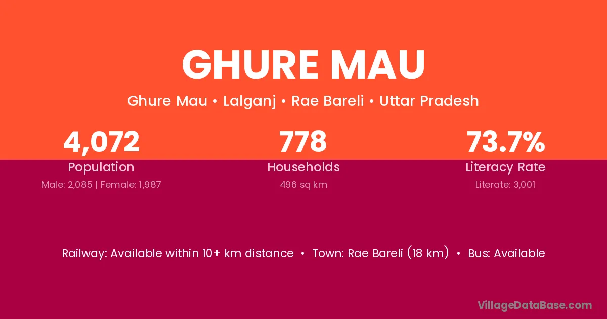 Rae Bareli (18 km) is the nearest town to Ghure Mau village for major economic activities and is located approximately 18 km away.