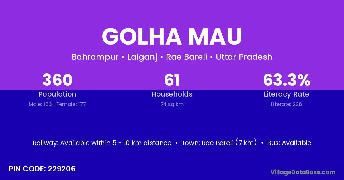 Rae Bareli (7 km) is the nearest town to Golha Mau village for major economic activities and is located approximately 7 km away.