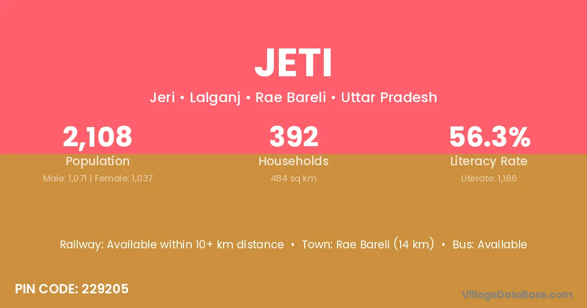 Rae Bareli (14 km) is the nearest town to Jeti village for major economic activities and is located approximately 14 km away.