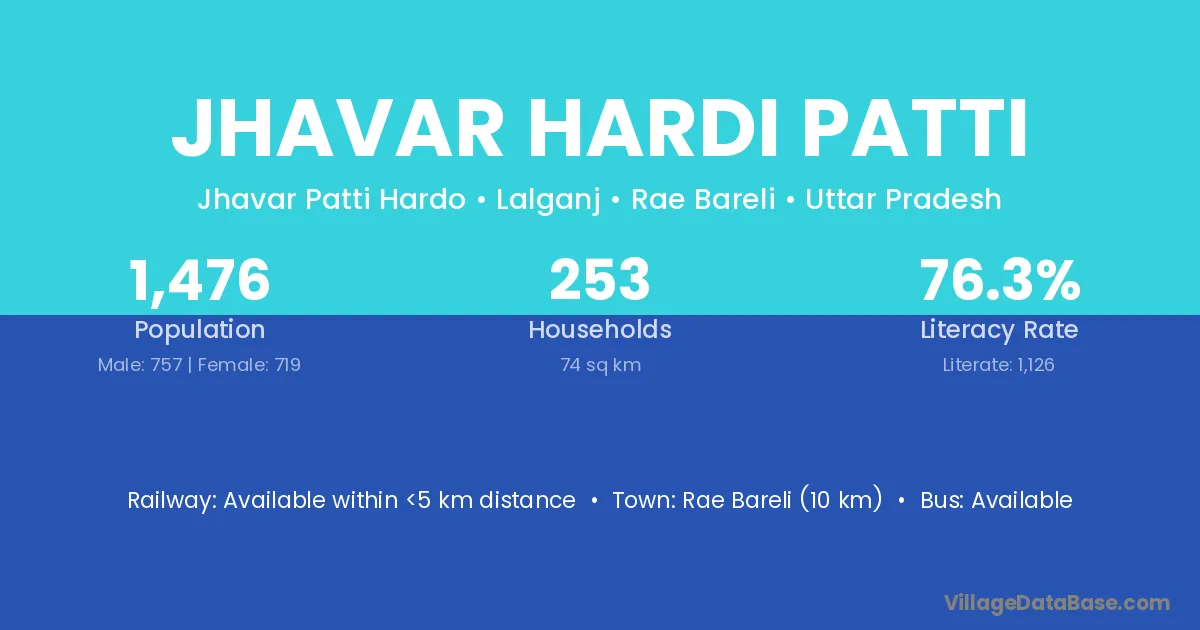Rae Bareli (10 km) is the nearest town to Jhavar Hardi Patti village for major economic activities and is located approximately 10 km away.