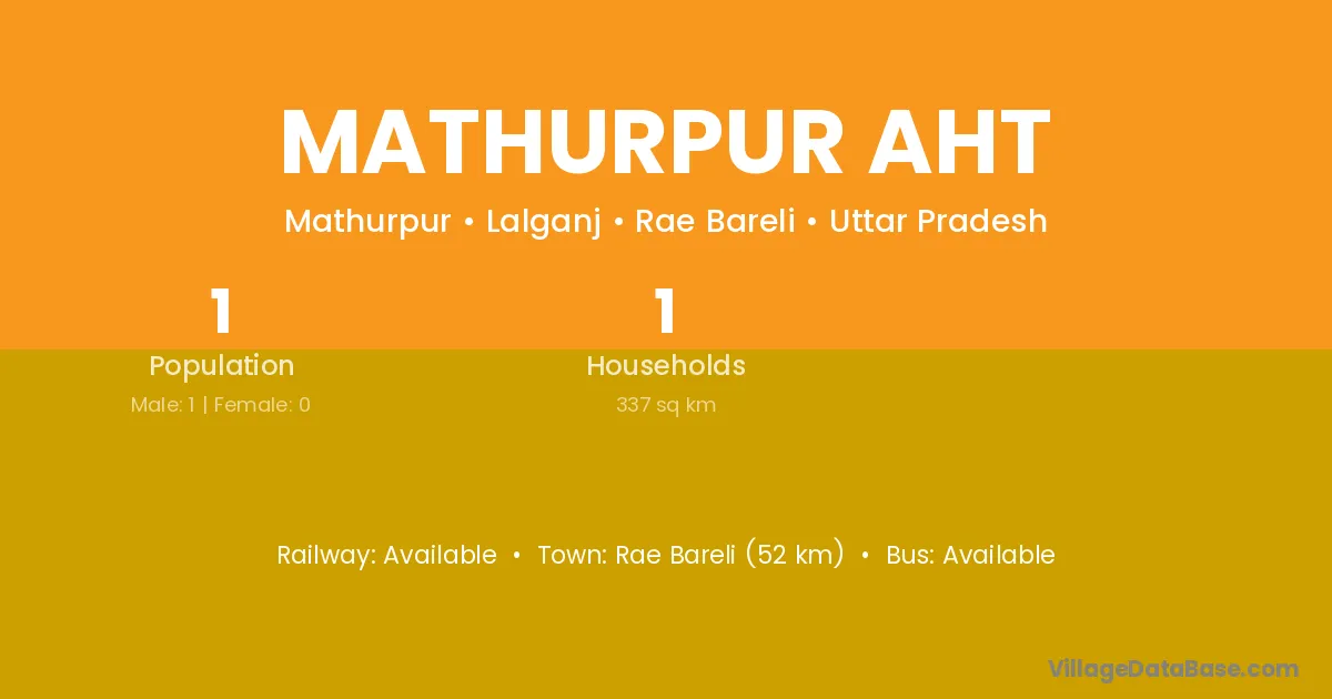 Rae Bareli (52 km) is the nearest town to Mathurpur Aht village for major economic activities and is located approximately 52 km away.
