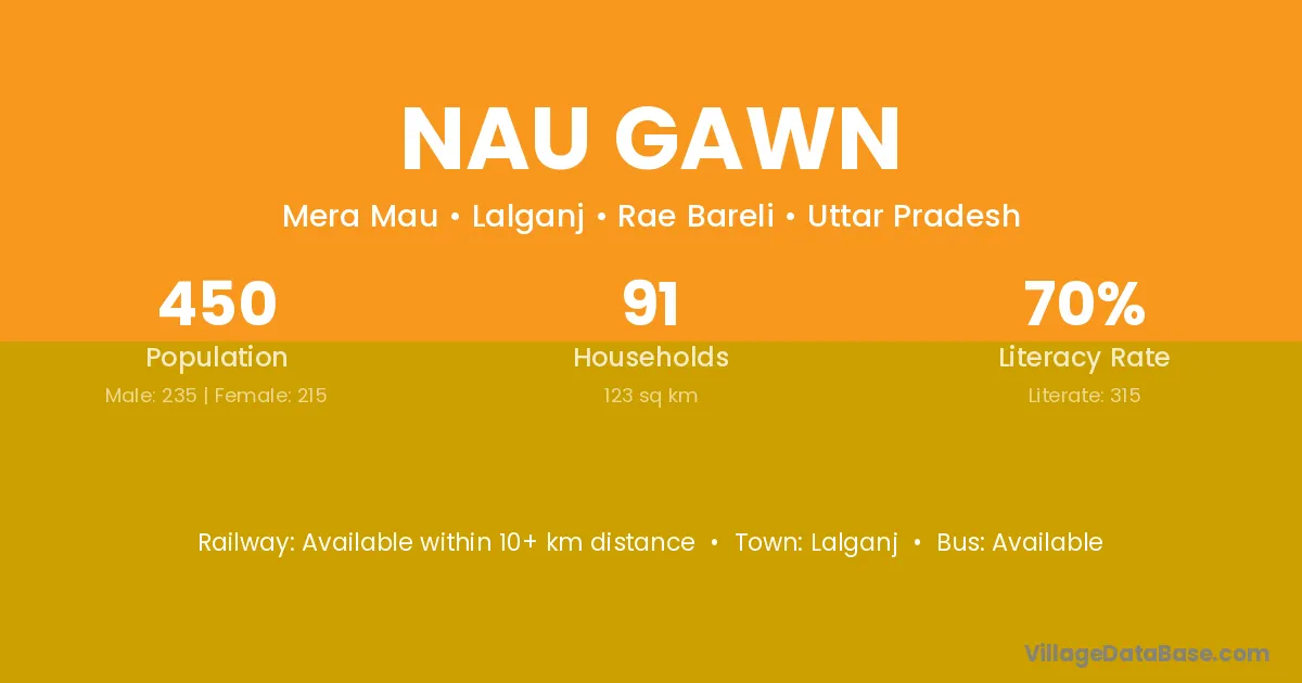 Nau Gawn village has a total population of 450 people, of which 235 are males and 215 are females.