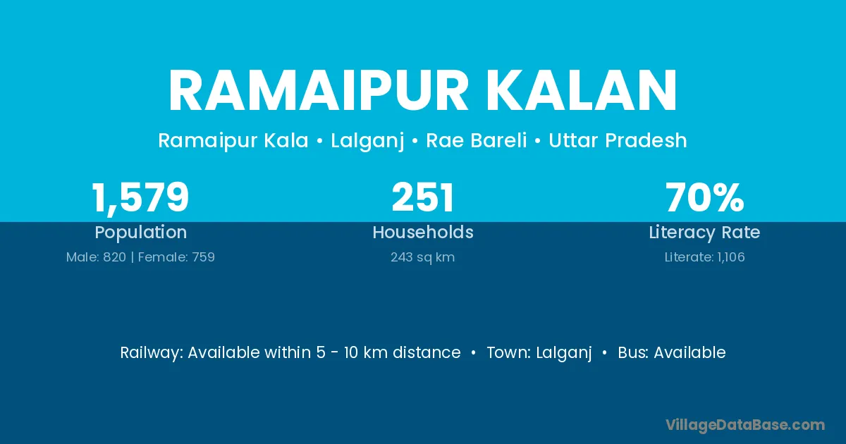 Ramaipur Kalan village has a total population of 1,579 people, of which 820 are males and 759 are females.