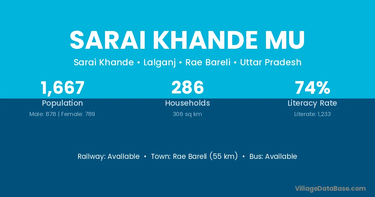 Rae Bareli (55 km) is the nearest town to Sarai Khande Mu village for major economic activities and is located approximately 55 km away.