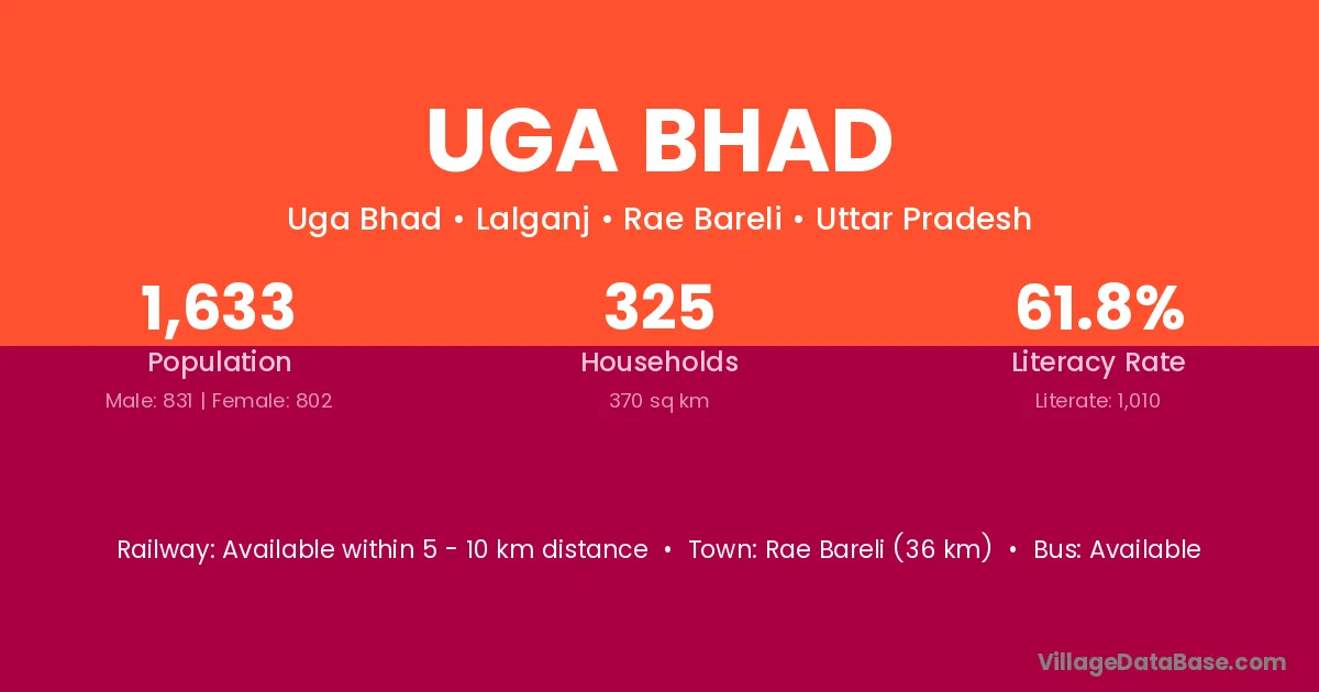 Rae Bareli (36 km) is the nearest town to Uga Bhad village for major economic activities and is located approximately 36 km away.
