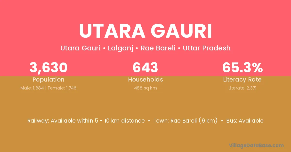 Rae Bareli (9 km) is the nearest town to Utara Gauri village for major economic activities and is located approximately 9 km away.