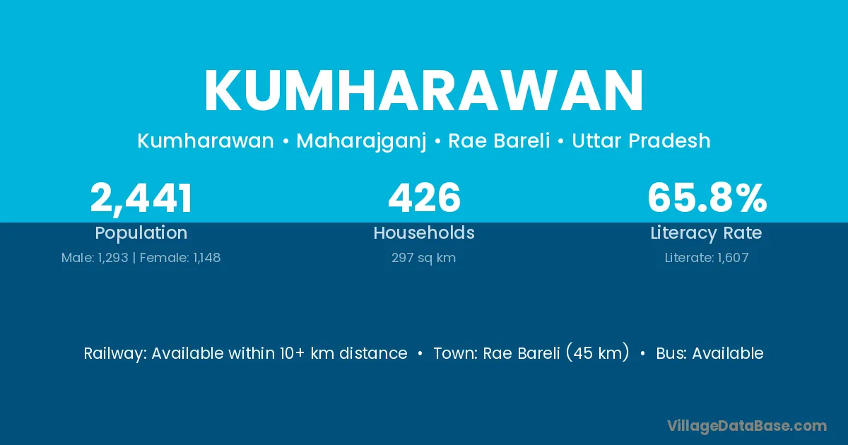 Rae Bareli (45 km) is the nearest town to Kumharawan village for major economic activities and is located approximately 45 km away.