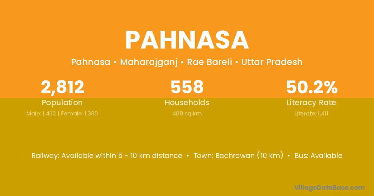 Bachrawan (10 km) is the nearest town to Pahnasa village for major economic activities and is located approximately 10 km away.