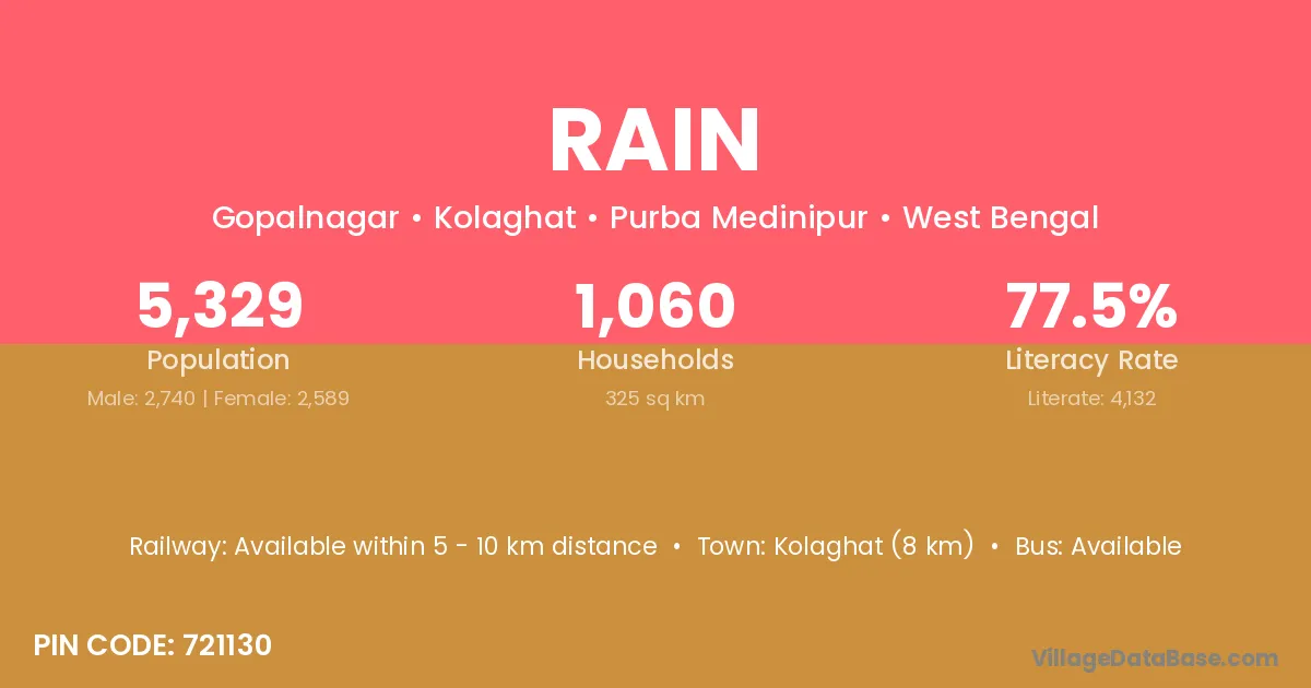 Rae Bareli (39 km) is the nearest town to Rain village for major economic activities and is located approximately 39 km away.