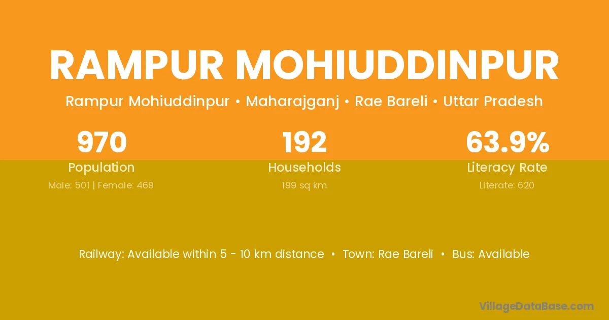 Rampur Mohiuddinpur village has a total population of 970 people, of which 501 are males and 469 are females.