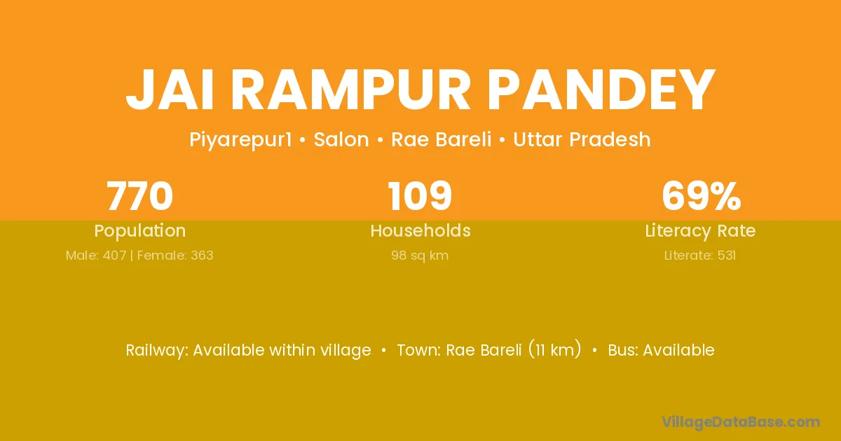 Jai Rampur Pandey village has a total population of 770 people, of which 407 are males and 363 are females.